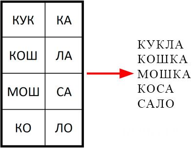 Дидактическая задача. Упражнять детей в чтении слова; развивать навыки словообразования путем замены букв.