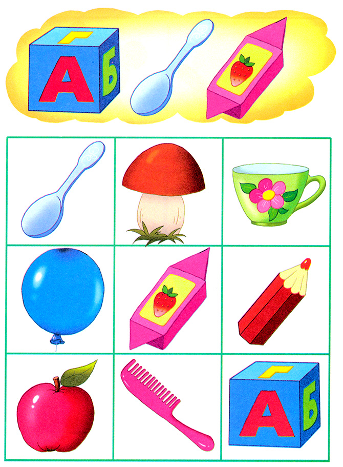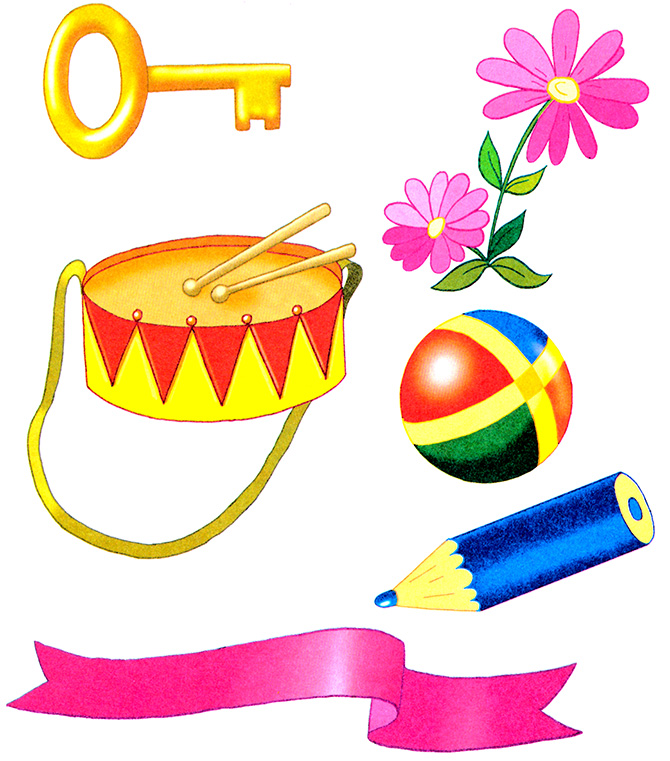 Найди на картинке барабан (ленточку, ключик, цветок, мяч, карандаш).
